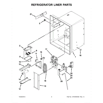 The Reservoir is a Whirlpool OEM replacement part for Whirlpool side-by-side refrigerators. This assembly does include the filter head. The filter head connects the external filter cartridge to the internal reservoir. The reservoir holds filtered water that is dispensed from the external door dispenser. Causes can be normal wear to sealing components, cracks in plastic from repeated pressure changes, or mineral buildup affecting water flow. Symptoms of a problem include: