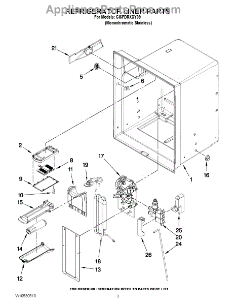 The Reservoir is a Whirlpool OEM replacement part for Whirlpool side-by-side refrigerators. This assembly does include the filter head. The filter head connects the external filter cartridge to the internal reservoir. The reservoir holds filtered water that is dispensed from the external door dispenser. Causes can be normal wear to sealing components, cracks in plastic from repeated pressure changes, or mineral buildup affecting water flow. Symptoms of a problem include: