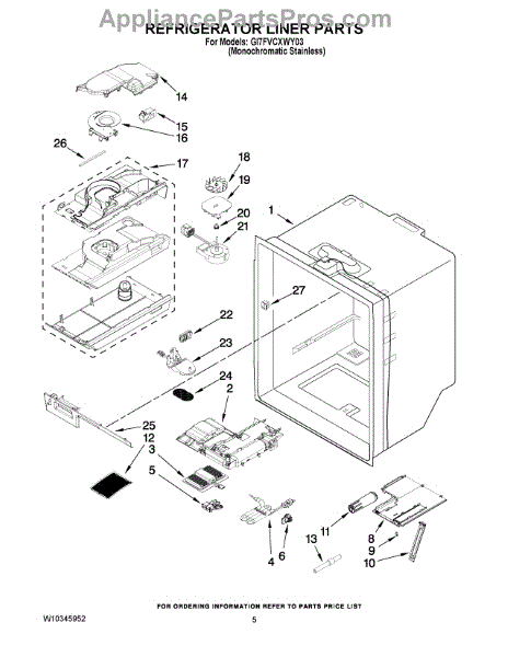 Parts for Whirlpool GI7FVCXWY03: 03 - Refrigerator Liner Parts