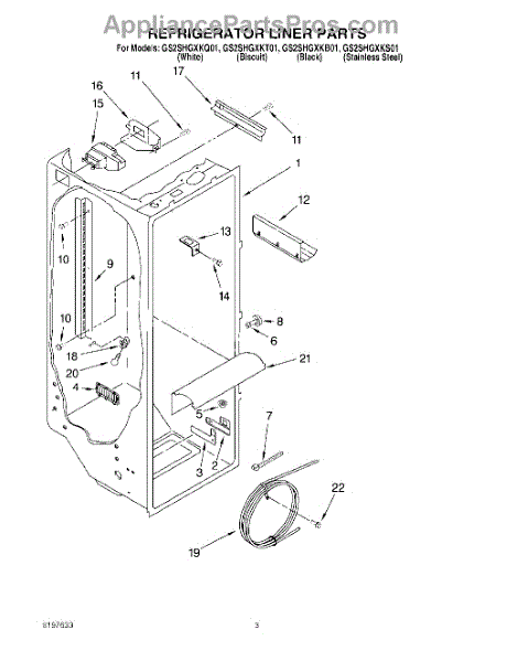 Parts for Whirlpool GS2SHGXKB01: 02 - Refrigerator Liner Parts