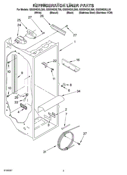 Parts for Whirlpool GS5SHGXLT00: 02 - Refrigerator Liner Parts