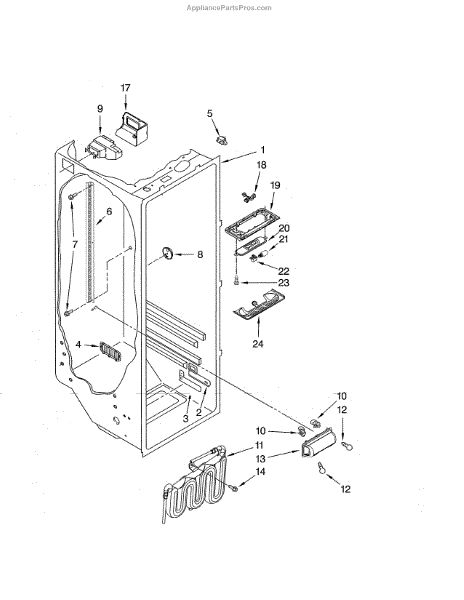 The Water Reservoir Tubing is an OEM replacement part for Whirlpool refrigerators. It is a flexible plastic tubing that replaces the water reservoir and holds the water for the ice maker and dispenser. Causes can include cracks from heat or cold exposure over time, punctures from sharp edges during installation, or deterioration of plastic tubing that impacts integrity. Symptoms of bad water reservoir tubing include: