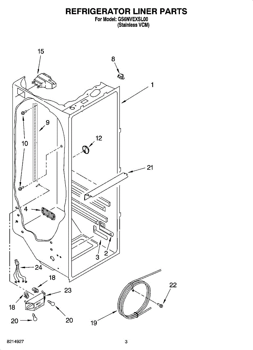 Parts for Whirlpool GS6NVEXSL00: 02 - Refrigerator Liner Parts