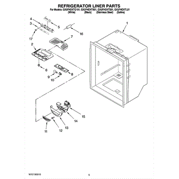 Parts for Whirlpool GX5FHDXTQ01: 03 - Refrigerator Liner Parts