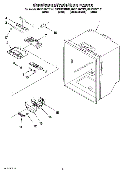 Parts for Whirlpool GX5FHDXTS01: 03 - Refrigerator Liner Parts