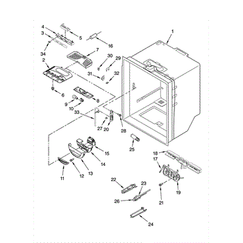 A replacement water reservoir that stores and routes water for the refrigerator dispenser and ice system, restoring proper water flow and stopping leaks from a damaged or cracked reservoir. What it does