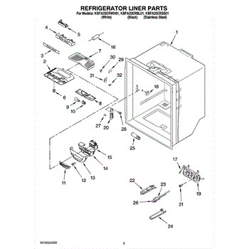 Parts for Kitchenaid KBFA25ERWH01: 03 - Refrigerator Liner Parts