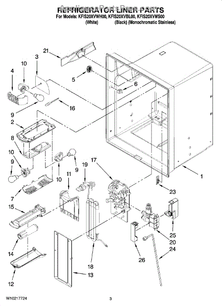 Parts for Kitchenaid KFIS20XVBL00: 02 - Refrigerator Liner Parts