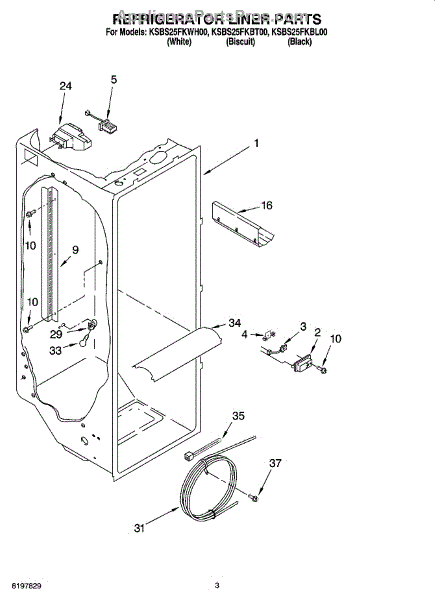 Parts for Kitchenaid KSBS25FKBL00: 02 - Refrigerator Liner Parts