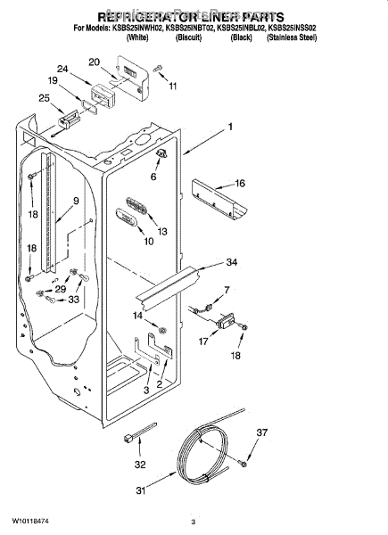 The Water Reservoir Tubing is an OEM replacement part for Whirlpool refrigerators. It is a flexible plastic tubing that replaces the water reservoir and holds the water for the ice maker and dispenser. Causes can include cracks from heat or cold exposure over time, punctures from sharp edges during installation, or deterioration of plastic tubing that impacts integrity. Symptoms of bad water reservoir tubing include: