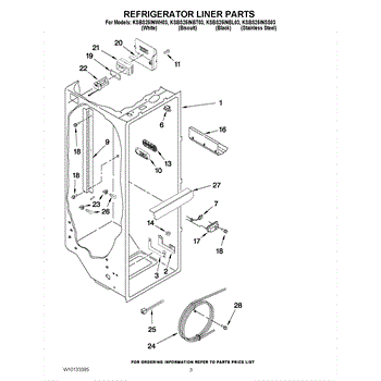 The Water Reservoir Tubing is an OEM replacement part for Whirlpool refrigerators. It is a flexible plastic tubing that replaces the water reservoir and holds the water for the ice maker and dispenser. Causes can include cracks from heat or cold exposure over time, punctures from sharp edges during installation, or deterioration of plastic tubing that impacts integrity. Symptoms of bad water reservoir tubing include:
