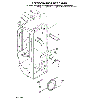 The Water Reservoir Tubing is an OEM replacement part for Whirlpool refrigerators. It is a flexible plastic tubing that replaces the water reservoir and holds the water for the ice maker and dispenser. Causes can include cracks from heat or cold exposure over time, punctures from sharp edges during installation, or deterioration of plastic tubing that impacts integrity. Symptoms of bad water reservoir tubing include: