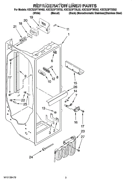 Parts for Kitchenaid KSCS23FTWH02: 02 - Refrigerator Liner Parts