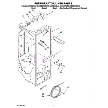 The Water Reservoir Tubing is an OEM replacement part for Whirlpool refrigerators. It is a flexible plastic tubing that replaces the water reservoir and holds the water for the ice maker and dispenser. Causes can include cracks from heat or cold exposure over time, punctures from sharp edges during installation, or deterioration of plastic tubing that impacts integrity. Symptoms of bad water reservoir tubing include: