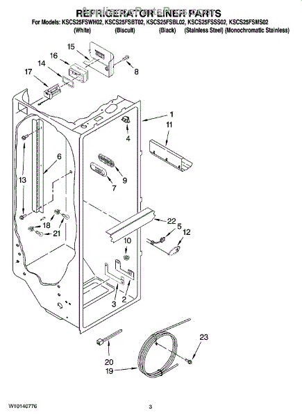 Parts for Kitchenaid KSCS25FSBT02: 02 - Refrigerator Liner Parts