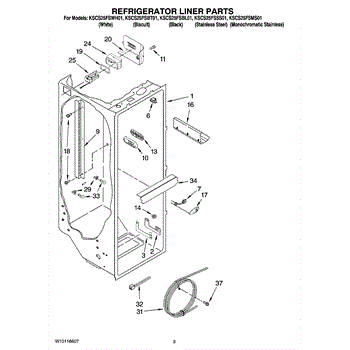 The Water Reservoir Tubing is an OEM replacement part for Whirlpool refrigerators. It is a flexible plastic tubing that replaces the water reservoir and holds the water for the ice maker and dispenser. Causes can include cracks from heat or cold exposure over time, punctures from sharp edges during installation, or deterioration of plastic tubing that impacts integrity. Symptoms of bad water reservoir tubing include: