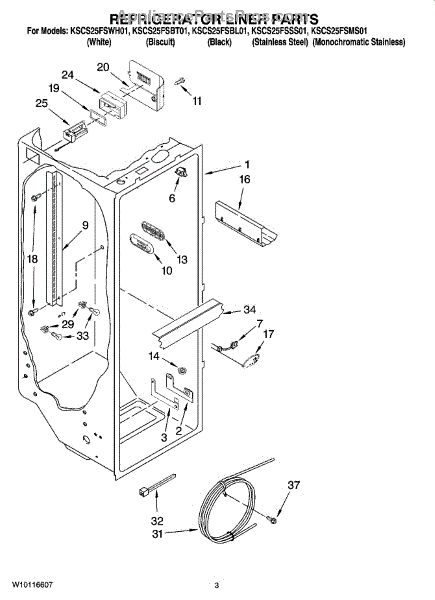 Parts for Kitchenaid KSCS25FSWH01: 02 - Refrigerator Liner Parts