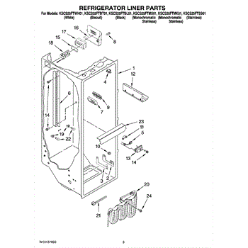 The Water Reservoir Tubing is an OEM replacement part for Whirlpool refrigerators. It is a flexible plastic tubing that replaces the water reservoir and holds the water for the ice maker and dispenser. Causes can include cracks from heat or cold exposure over time, punctures from sharp edges during installation, or deterioration of plastic tubing that impacts integrity. Symptoms of bad water reservoir tubing include: