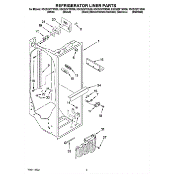 The Water Reservoir Tubing is an OEM replacement part for Whirlpool refrigerators. It is a flexible plastic tubing that replaces the water reservoir and holds the water for the ice maker and dispenser. Causes can include cracks from heat or cold exposure over time, punctures from sharp edges during installation, or deterioration of plastic tubing that impacts integrity. Symptoms of bad water reservoir tubing include: