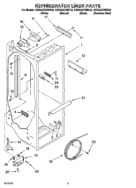 Parts for Kitchenaid KSRA22CNWH02: 02 - Refrigerator Liner Parts