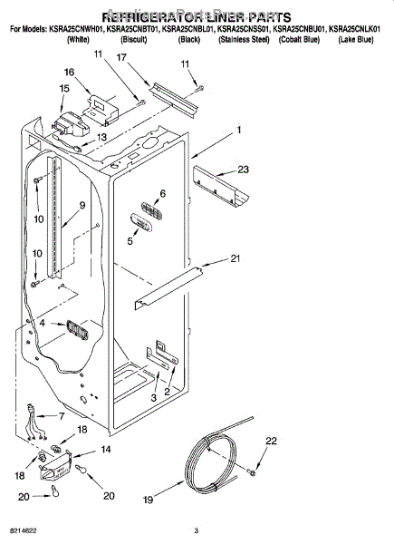 Parts for Kitchenaid KSRA25CNBL01: 02 - Refrigerator Liner Parts