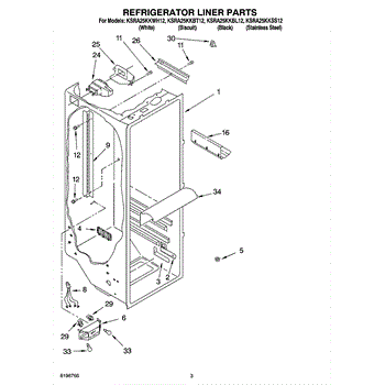 Parts for Kitchenaid KSRA25KKWH12: 02 - Refrigerator Liner Parts
