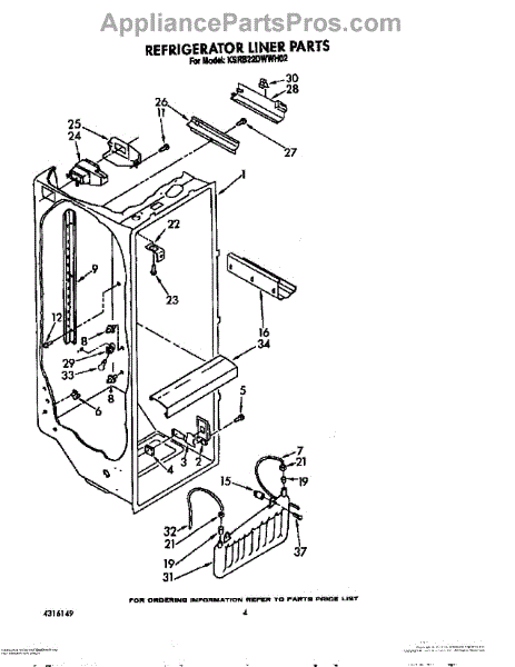 Parts for Kitchenaid KSRB22DWWH02: 03 - Refrigerator Liner Parts