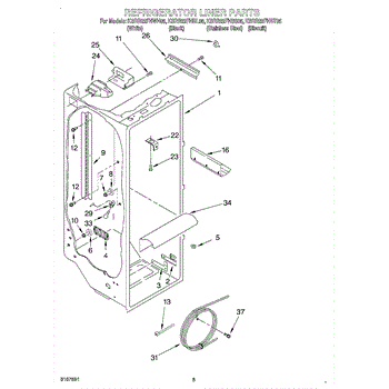 Parts for Kitchenaid KSRB22FHBL05: 02 - Refrigerator Liner Parts