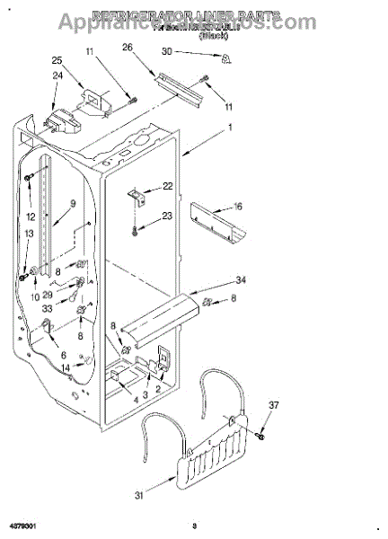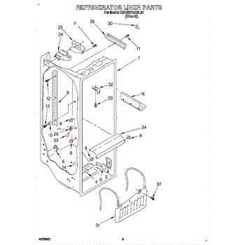 Parts for Kitchenaid KSRB27QABL10: 02 - Refrigerator Liner Parts