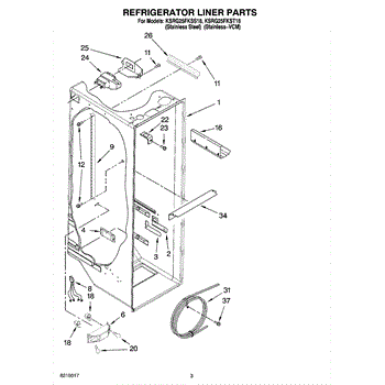 Parts for Kitchenaid KSRG25FKST18: 02 - Refrigerator Liner Parts