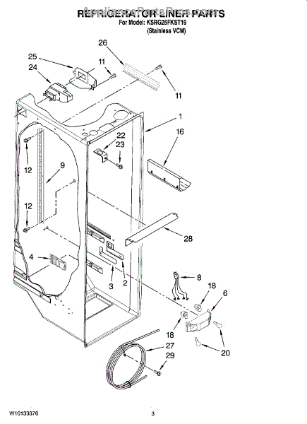 Parts for Kitchenaid KSRG25FKST19: 02 - Refrigerator Liner Parts