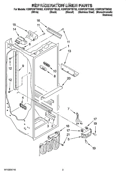 Parts for Kitchenaid KSRP25FTWH02: 02 - Refrigerator Liner Parts