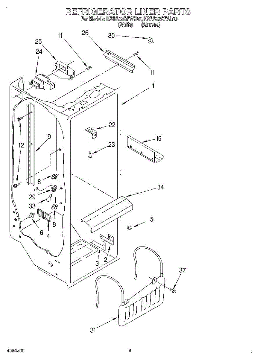 Parts for Kitchenaid KSRS22QFWH00: 02 - Refrigerator Liner Parts