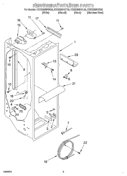Parts for Kitchenaid KSRS25IHWH02: 02 - Refrigerator Liner Parts