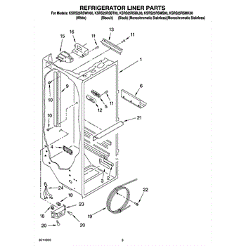 Parts for Kitchenaid KSRS25RSMS00: 02 - Refrigerator Liner Parts