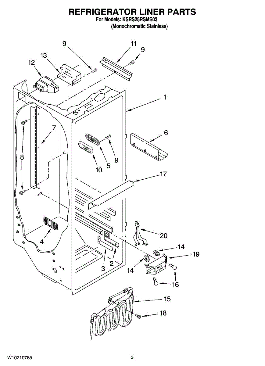 Refrigerator cover installs to protect internal components or provide a finished look. Replace if cracked, broken, or missing for proper coverage.