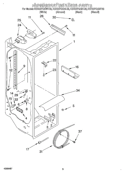 Parts for Kitchenaid KSRS27QGWH03: 02 - Refrigerator Liner Parts