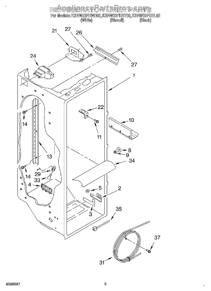 The Air Diffuser Assembly is an OEM part for Whirlpool refrigerators. It regulates the airflow between the refrigerator and freezer compartments, ensuring the proper distribution of cold air to maintain the desired temperatures in both sections.