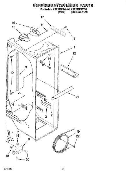 Parts for Kitchenaid KSRX22FSWH01: 02 - Refrigerator Liner Parts