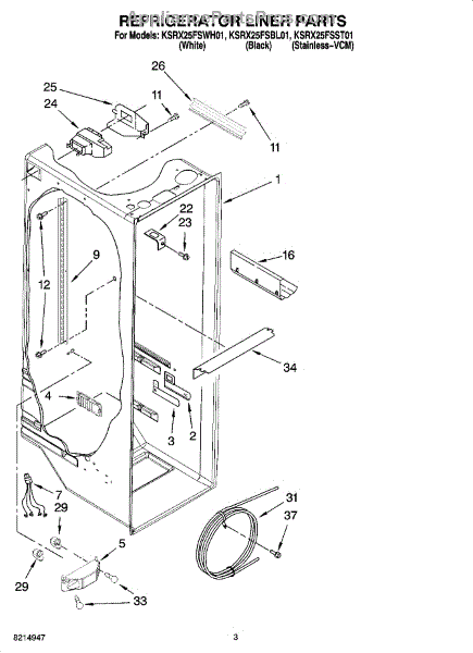 Parts for Kitchenaid KSRX25FSST01: 02 - Refrigerator Liner Parts