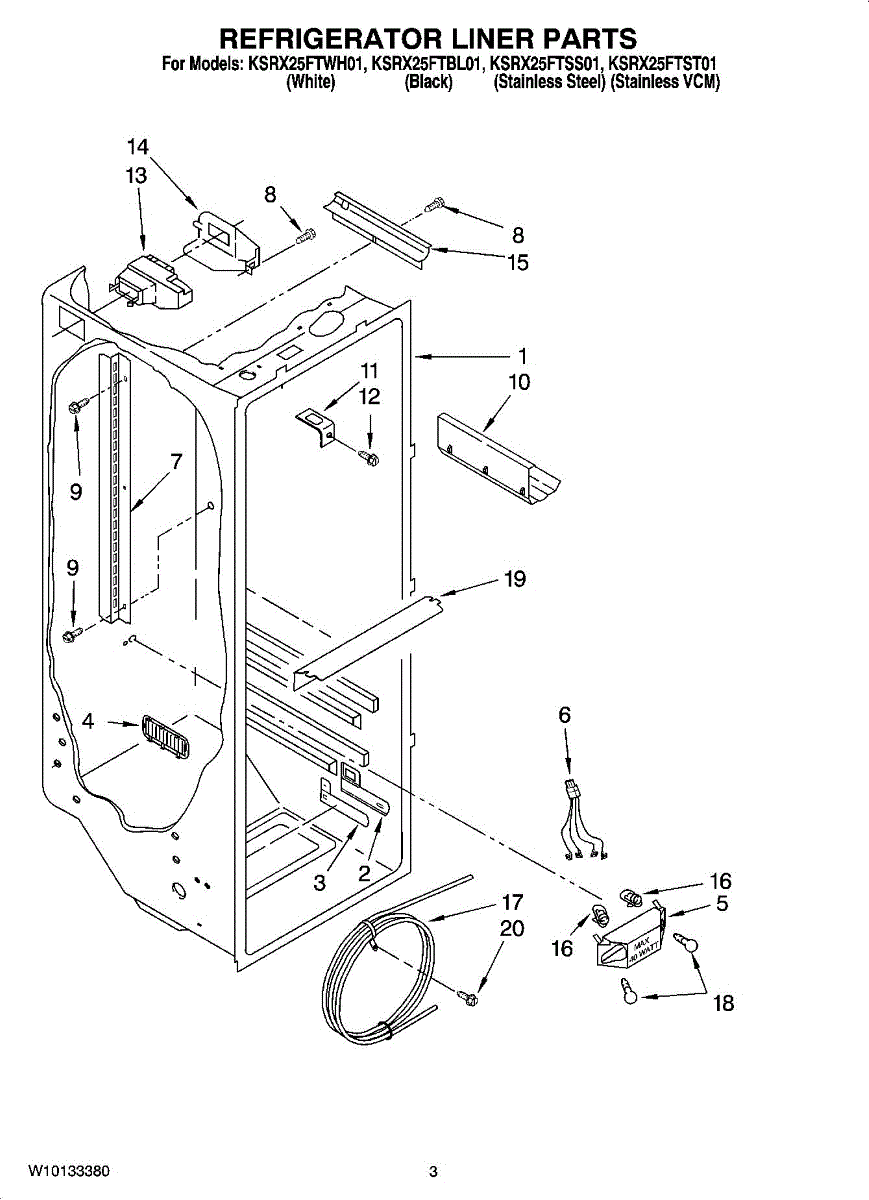 Refrigerator cover installs to protect internal components or provide a finished look. Replace if cracked, broken, or missing for proper coverage.