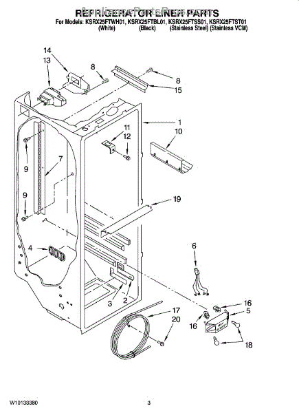 Parts for Kitchenaid KSRX25FTSS01: 02 - Refrigerator Liner Parts