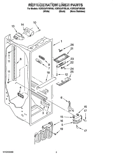 The Water Reservoir Tubing is an OEM replacement part for Whirlpool refrigerators. It is a flexible plastic tubing that replaces the water reservoir and holds the water for the ice maker and dispenser. Causes can include cracks from heat or cold exposure over time, punctures from sharp edges during installation, or deterioration of plastic tubing that impacts integrity. Symptoms of bad water reservoir tubing include: