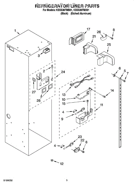 Parts for Kitchenaid KSSS36FMB01: 04 - Refrigerator Liner Parts