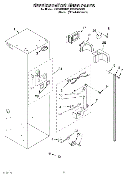 Parts for Kitchenaid KSSS36FMX00: 04 - Refrigerator Liner Parts