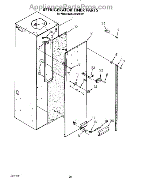 Parts for Kitchenaid KSSS42MWX01: 16 - Refrigerator Liner Parts