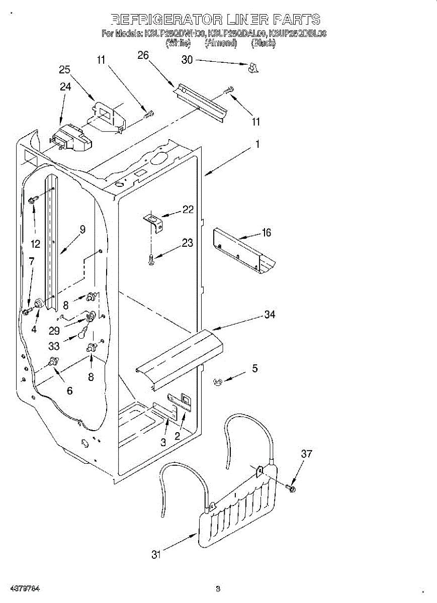 Parts for Kitchenaid KSUP25QDAL00: 02 - Refrigerator Liner Parts