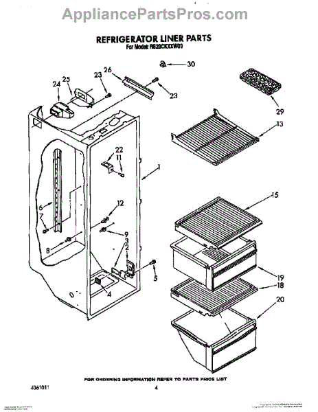 Parts for Whirlpool RS20CKXXL00: 03 - Refrigerator Liner Parts