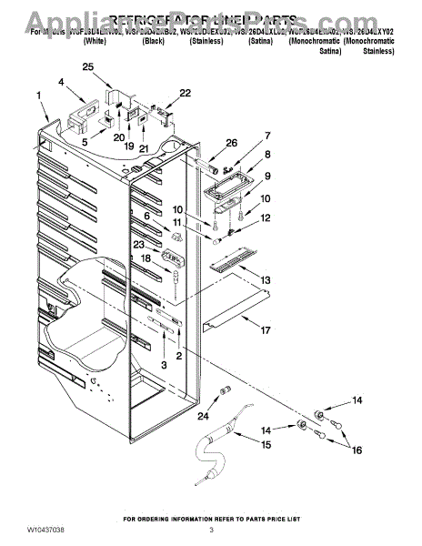 Parts for Whirlpool WSF26D4EXS02: 02 - Refrigerator Liner Parts