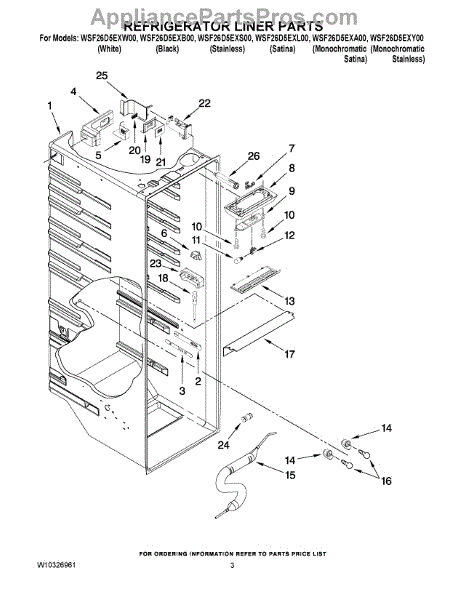Parts for Whirlpool WSF26D5EXL00: 02 - Refrigerator Liner Parts